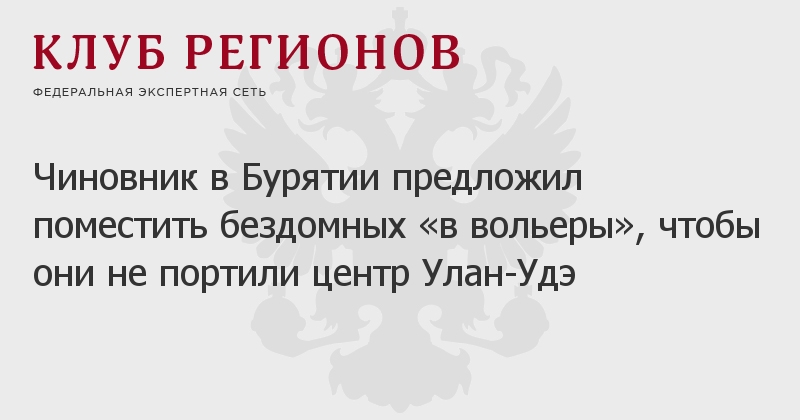 Очистить на время праздника центр Улан-Удэ от бездомных предложил глава муниципального района Андрей Тулонов. По словам чиновника, люди без определенного места жительства вполне могут три дня провести «в вольерах», пока республика проводит международный фестиваль бурятского песенного искусства, народного творчества и спортивного мастерства.