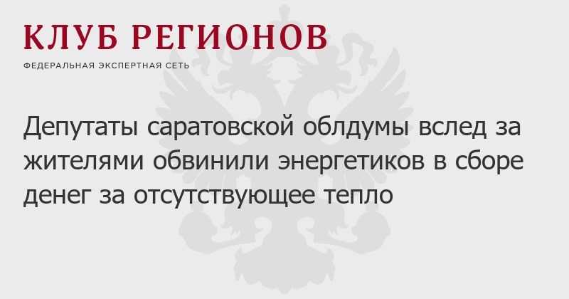 Депутаты саратовской облдумы вслед за жителями обвинили энергетиков в сборе денег за отсутствующее тепло
