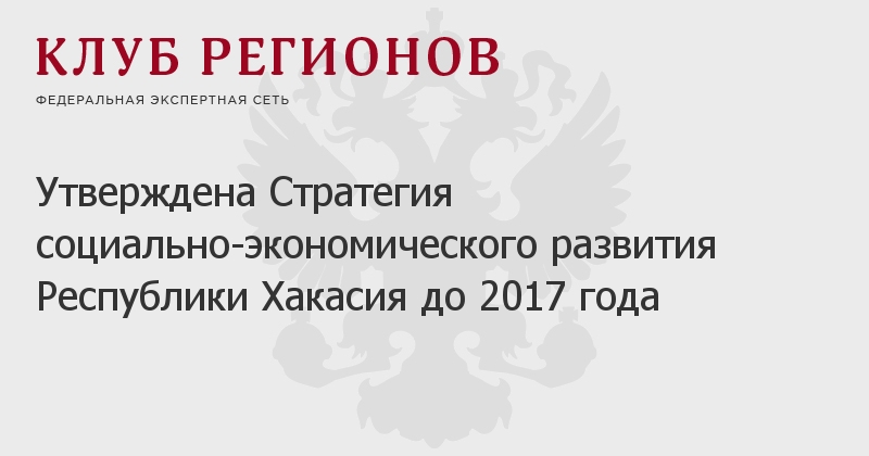 Утверждена Стратегия социально-экономического развития Республики Хакасия до 2017 года