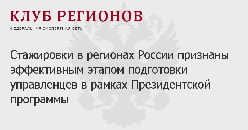 Стажировки в регионах России признаны эффективным этапом подготовки управленцев в рамках Президентской программы