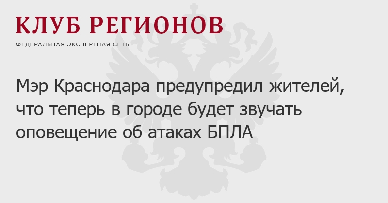 Мэр Краснодара предупредил жителей, что теперь в городе будет звучать оповещение об атаках БПЛА