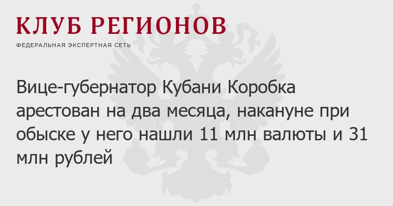 Вице-губернатор Кубани Коробка арестован на два месяца, накануне при обыске у него нашли 11 млн валюты и 31 млн рублей