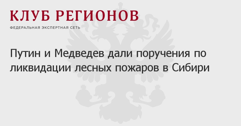 Президент Владимир Путин поручил Минобороны оказать помощь в тушении лесных пожаров в регионах. Глава государства также дал указание «до особого распоряжения сохранить группировку Вооруженных Сил в Иркутской области, сформированную для ликвидации последствий наводнения». Красноярский край накануне посетил премьер-министр Дмитрий Медведев. Он провел совещание, на котором потребовал от властей регионов обеспечить информирование населения о ситуации с лесными пожарами. По последним данным, на территории РФ зафиксированы 468 возгораний в лесах общей площадью свыше 2,9 млн га.