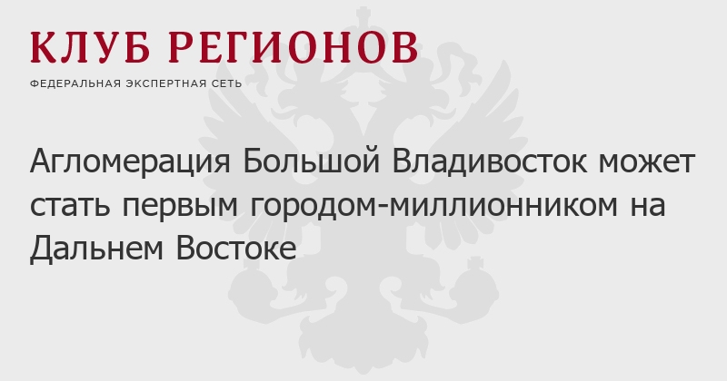 Агломерация Большой Владивосток может стать первым городом-миллионником на Дальнем Востоке