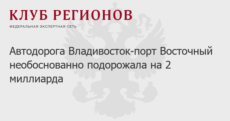 Автодорога Владивосток-порт Восточный необоснованно подорожала на 2 миллиарда