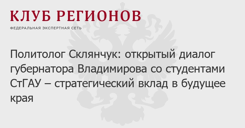 Политолог Склянчук: открытый диалог губернатора Владимирова со студентами СтГАУ – стратегический вклад в будущее края