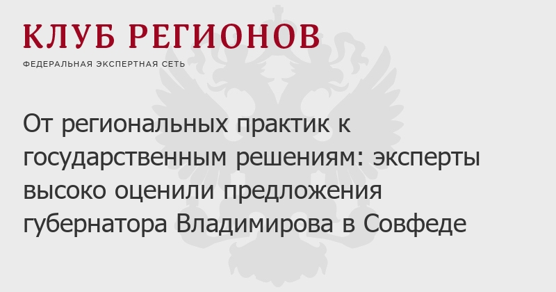 От региональных практик к государственным решениям: эксперты высоко оценили предложения губернатора Владимирова в Совфеде