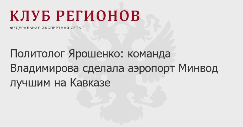 Политолог Ярошенко: команда Владимирова сделала аэропорт Минвод лучшим на Кавказе