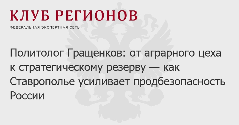 Политолог Гращенков: от аграрного цеха к стратегическому резерву — как Ставрополье усиливает продбезопасность России