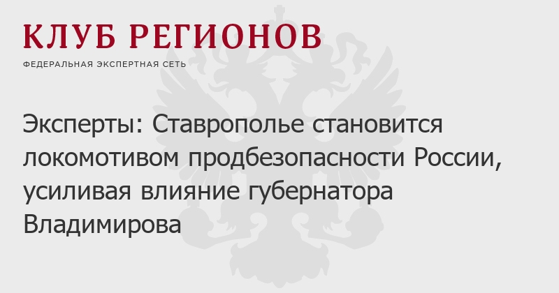 Эксперты: Ставрополье становится локомотивом продбезопасности России, усиливая влияние губернатора Владимирова