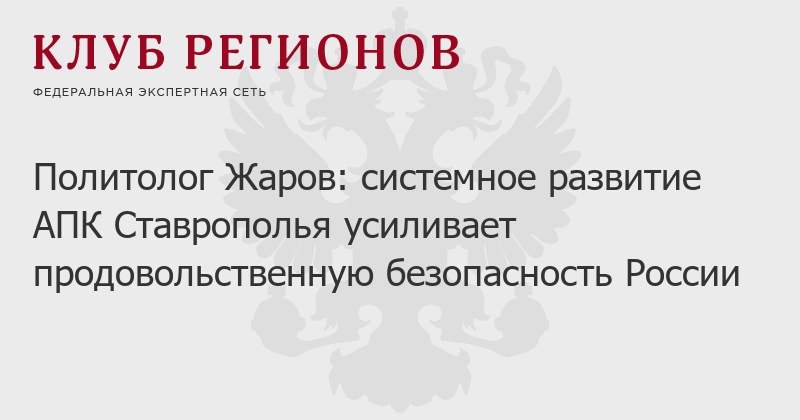 Политолог Жаров: системное развитие АПК Ставрополья усиливает продовольственную безопасность России