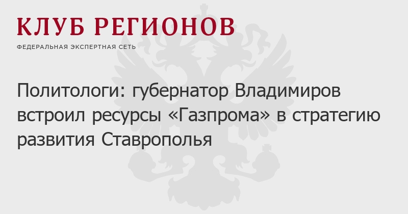 Политологи: губернатор Владимиров встроил ресурсы «Газпрома» в стратегию развития Ставрополья