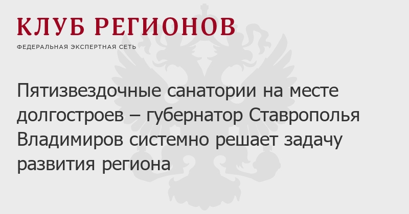 Пятизвездочные санатории на месте долгостроев – губернатор Ставрополья Владимиров системно решает задачу развития региона