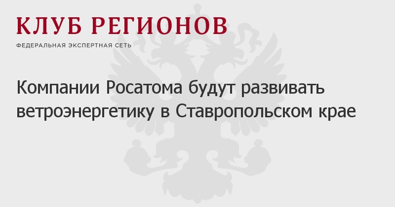 Компании Росатома будут развивать ветроэнергетику в Ставропольском крае