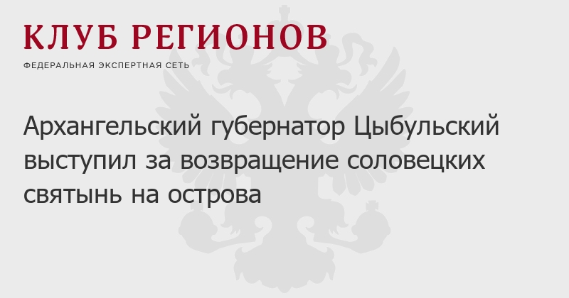 Архангельский губернатор Цыбульский выступил за возвращение соловецких святынь на острова