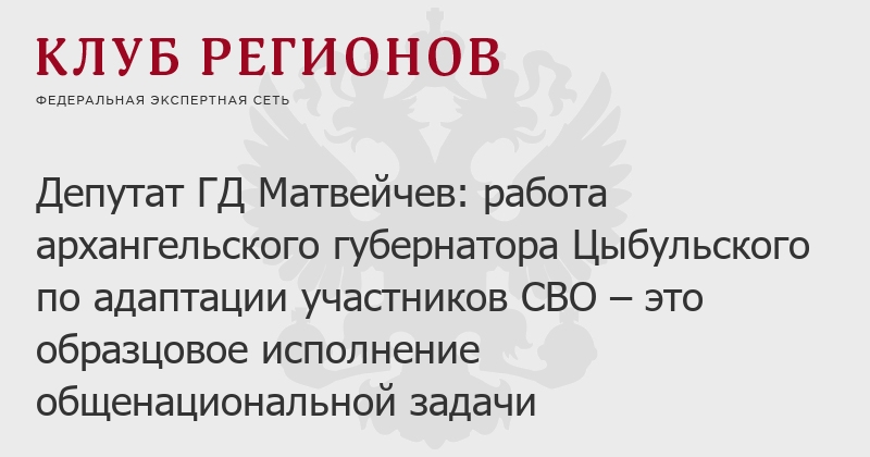 Депутат ГД Матвейчев: работа архангельского губернатора Цыбульского по адаптации участников СВО – это образцовое исполнение общенациональной задачи