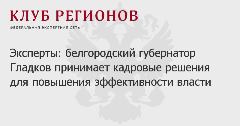 Эксперты: белгородский губернатор Гладков принимает кадровые решения для повышения эффективности власти