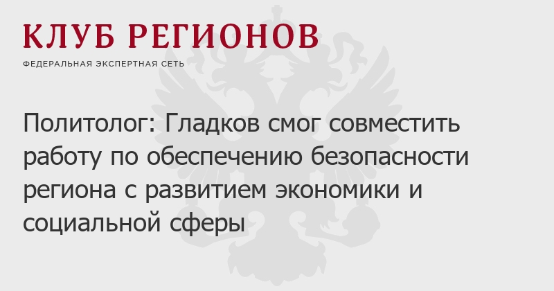 Политолог Александр Асафов считает, что Гладкову безупречно удается совмещать работу по обеспечению безопасности региона с развитием экономики и социальной сферы: «Крупный бизнес с лице металлургических и агропромышленных холдингов остается внутренней опорой Белгородской области, продолжая инвестировать в ее развитие через масштабные проекты. На ближайшие два года в регионе сформирован портфель из 19 ключевых инвестпроектов на сотни миллиардов рублей. А это новые производства, рабочие места и устойчивая налоговая база».