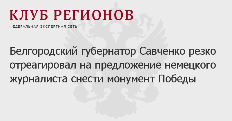 Белгородский губернатор Савченко резко отреагировал на предложение немецкого журналиста снести монумент Победы