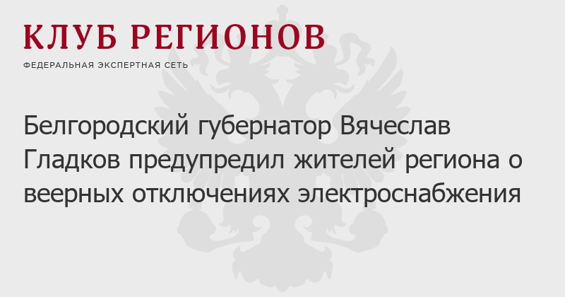 Белгородский губернатор Вячеслав Гладков предупредил жителей региона о веерных отключениях электроснабжения