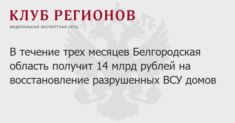 В течение трех месяцев Белгородская область получит 14 млрд рублей на восстановление разрушенных ВСУ домов