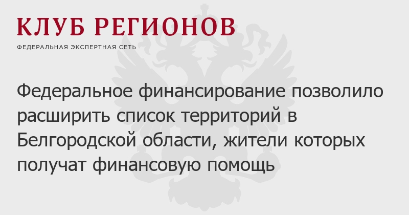 Федеральное финансирование позволило расширить список территорий в Белгородской области, жители которых получат финансовую помощь