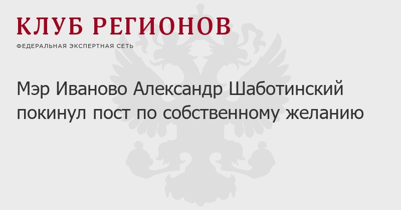 Мэр Иваново Александр Шаботинский покинул пост по собственному желанию