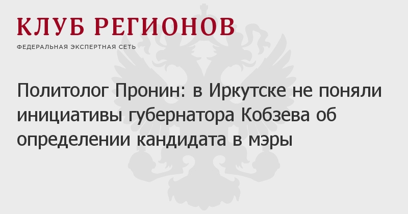 Политолог Пронин: в Иркутске не поняли инициативы губернатора Кобзева об определении кандидата в мэры