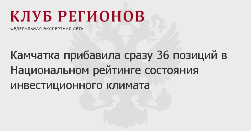 Камчатка прибавила сразу 36 позиций в Национальном рейтинге состояния инвестиционного климата
