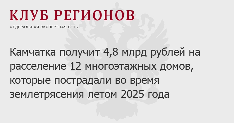 Камчатка получит 4,8 млрд рублей на расселение 12 многоэтажных домов, которые пострадали во время землетрясения летом 2025 года