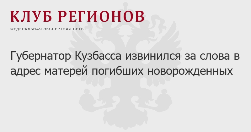 Губернатор Кузбасса извинился за слова в адрес матерей погибших новорожденных