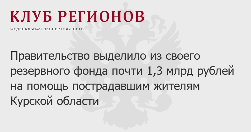 Правительство выделило из своего резервного фонда почти 1,3 млрд рублей на помощь пострадавшим жителям Курской области