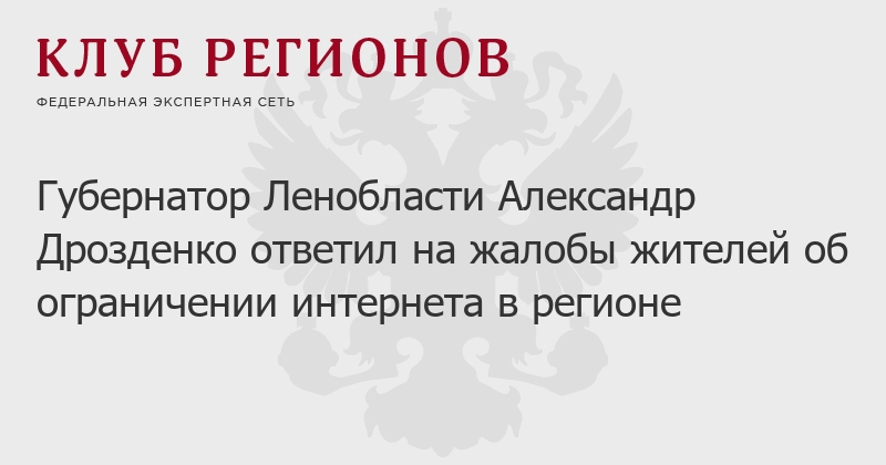Губернатор Ленобласти Александр Дрозденко ответил на жалобы жителей об ограничении интернета в регионе