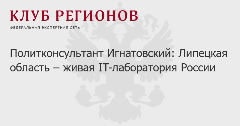 Политконсультант Игнатовский: Липецкая область – живая IT-лаборатория России