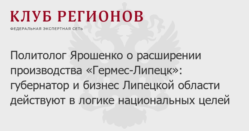 Политолог Ярошенко о расширении производства «Гермес-Липецк»: губернатор и бизнес Липецкой области действуют в логике национальных целей