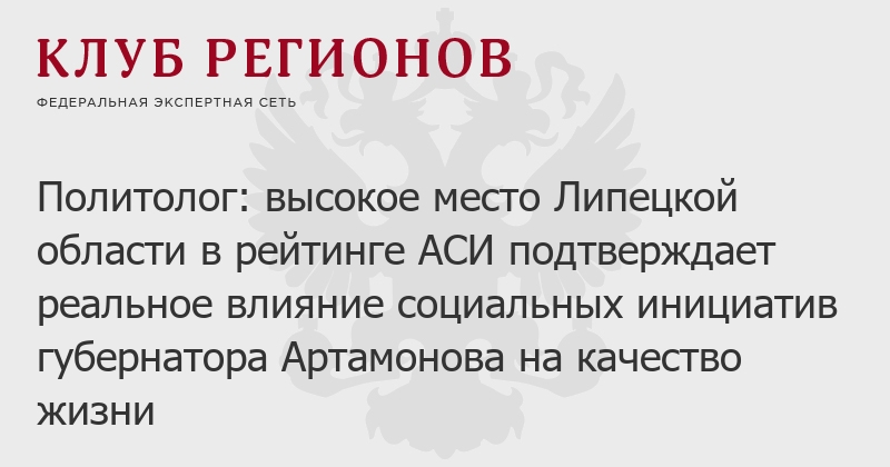 Политолог: высокое место Липецкой области в рейтинге АСИ подтверждает реальное влияние социальных инициатив губернатора Артамонова на качество жизни