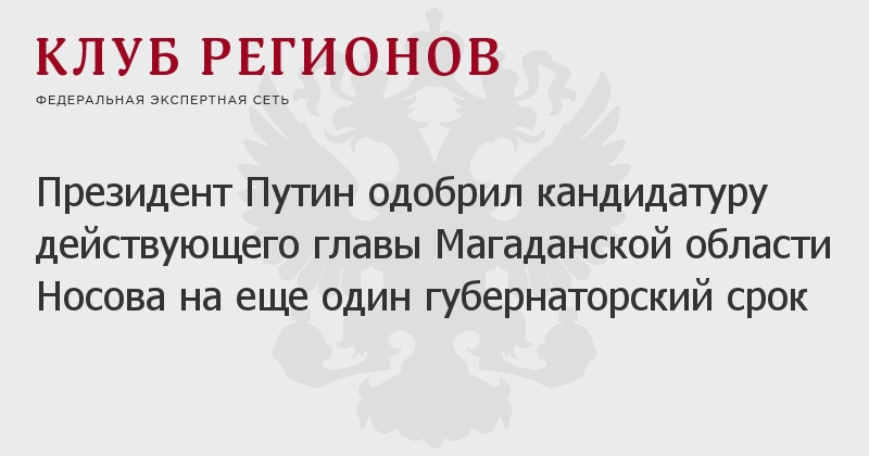 Президент Путин одобрил кандидатуру действующего главы Магаданской области Носова на еще один губернаторский срок