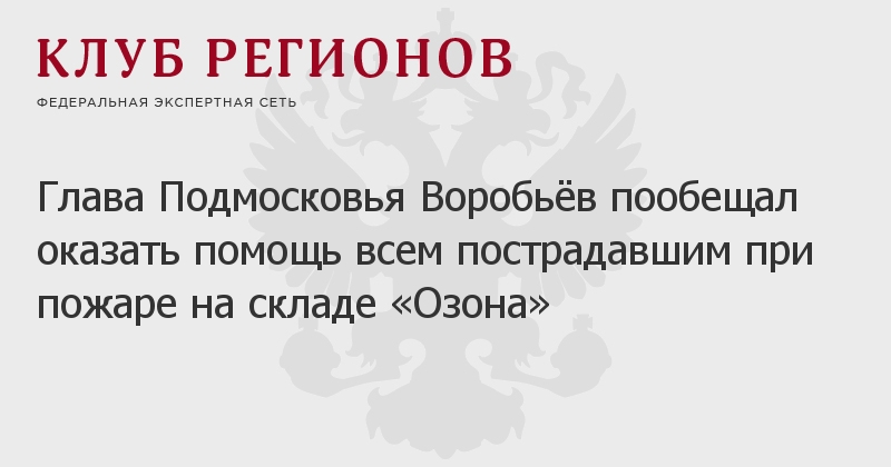 Глава Подмосковья Воробьёв пообещал оказать помощь всем пострадавшим при пожаре на складе «Озона»