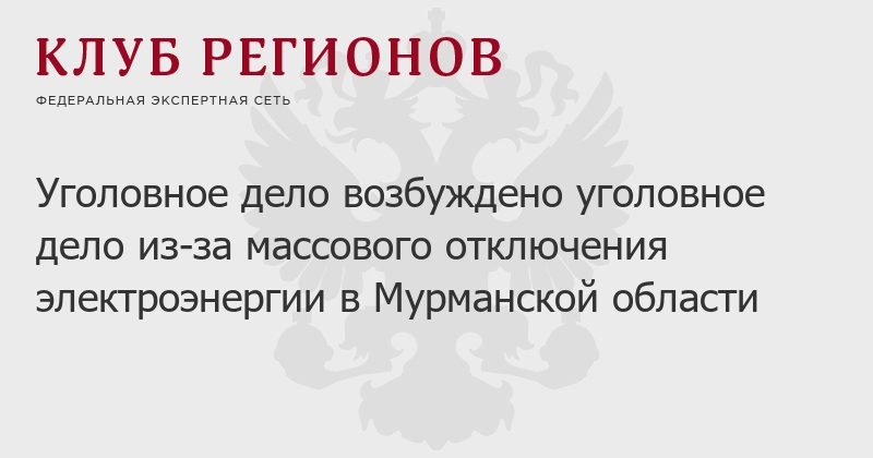 Уголовное дело возбуждено уголовное дело из-за массового отключения электроэнергии в Мурманской области