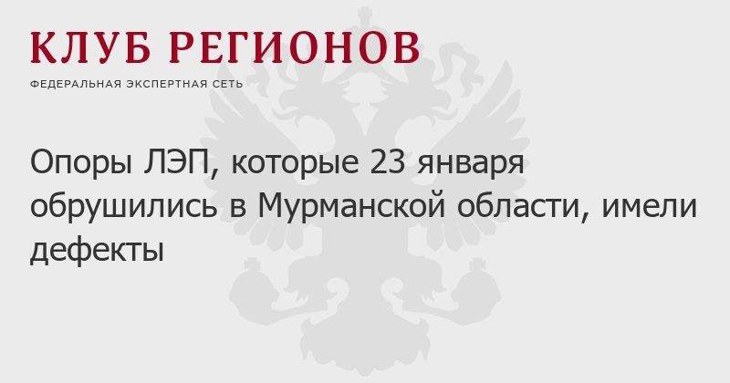 Опоры ЛЭП, которые 23 января обрушились в Мурманской области, имели дефекты