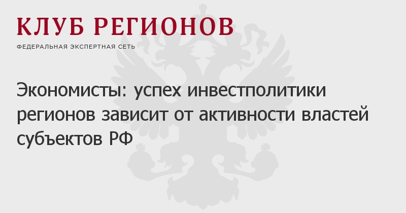 Экономисты: успех инвестполитики регионов зависит от активности властей субъектов РФ