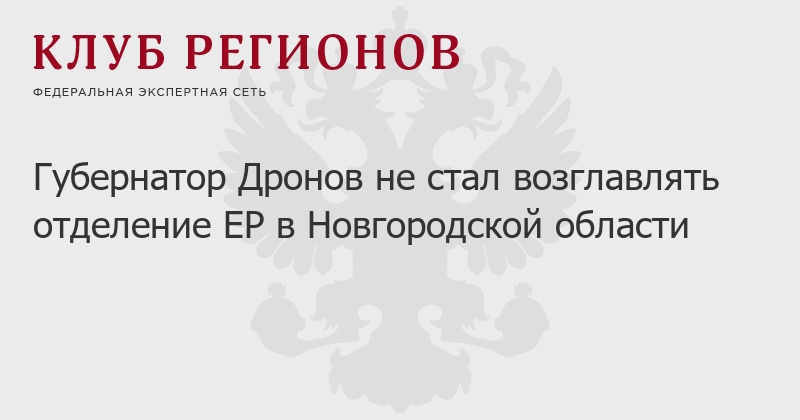 Губернатор Дронов не стал возглавлять отделение ЕР в Новгородской области