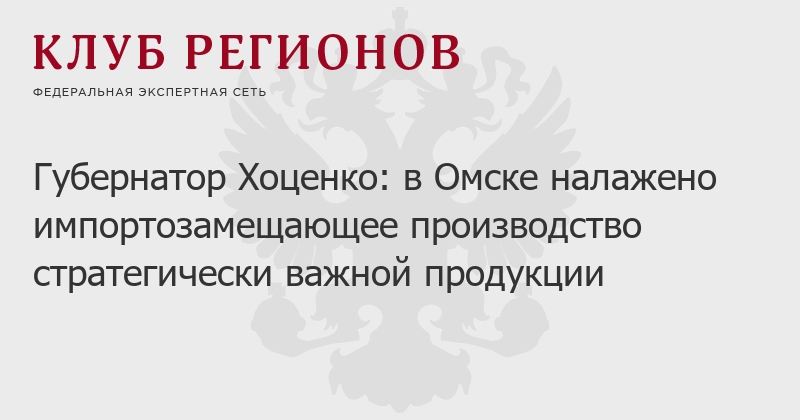 Губернатор Хоценко: в Омске налажено импортозамещающее производство стратегически важной продукции
