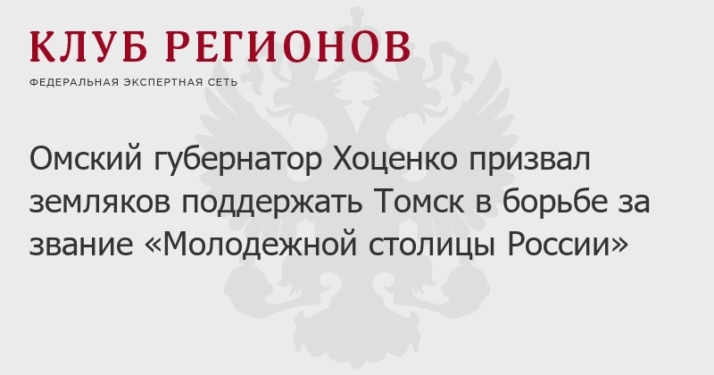 Глава Омской области Виталий Хоценко обратился к жителям региона с призывом поддержать Томск в конкурсе на звание «Молодёжной столицы России – 2026». «Дорогие омичи, давайте все вместе поможем Томску стать Молодежной столицей России 2026 года! Голосование началось! Поддержим томичей так же, как они в прошлом году вместе со всей Сибири поддерживали нас!» — написал глава региона в своих социальных сетях, разместив ссылку для голосования. Этот шаг является выполнением публичного обещания, которое губернатор дал год назад, когда Томск и другие сибирские регионы консолидированно поддерживали заявку Омска на аналогичный статус.