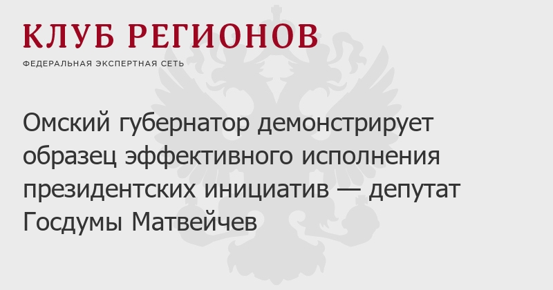 Омский губернатор демонстрирует образец эффективного исполнения президентских инициатив — депутат Госдумы Матвейчев