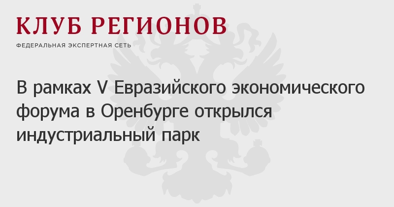 В рамках V Евразийского экономического форума в Оренбурге открылся индустриальный парк
