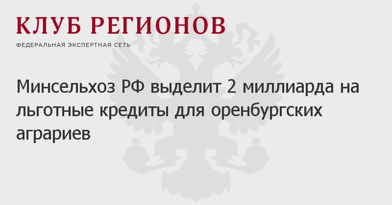 Минсельхоз РФ выделит 2 миллиарда на льготные кредиты для оренбургских аграриев