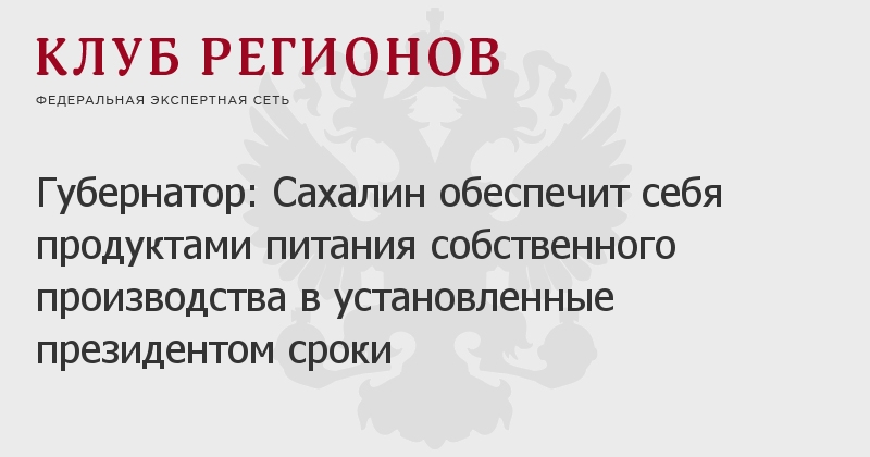 Губернатор: Сахалин обеспечит себя продуктами питания собственного производства в установленные президентом сроки