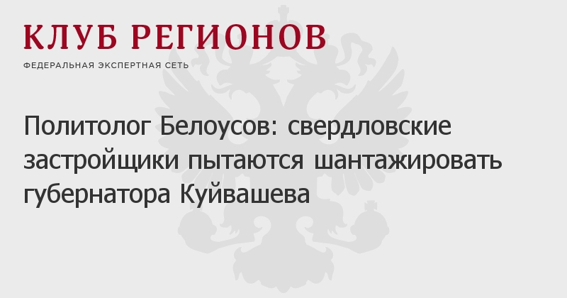 Политолог Белоусов: свердловские застройщики пытаются шантажировать губернатора Куйвашева