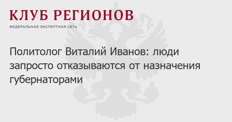 Политолог Виталий Иванов: люди запросто отказываются от назначения губернаторами